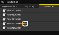 Imprimindo listas e relatórios. Para detalhes sobre a tela de log de trabalhos, consulte