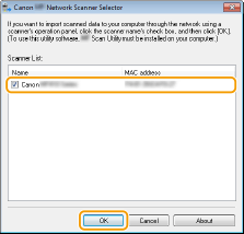 Selecione a caixa de seleção para a máquina e clique em [OK (OK)].