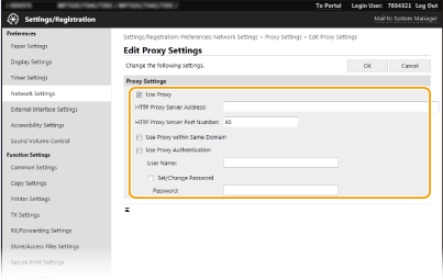 Označte začiarkavacie políčko [Use Proxy] a špecifikujte požadované nastavenia.