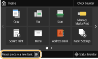 Ak sa zobrazuje <Odporúča sa výmena zásobníka (Tank replacement recommended.)>
