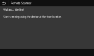 Ak sa zobrazí obrazovka <Vzdialený skener (Remote Scanner)> zobrazená nižšie, nemôžete pokračovať ďalším krokom. V takom prípade vyberte položku