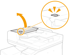 Nadvihnite podávač a skontrolujte miesto označené značkou