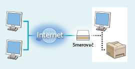 Adresa IP je číselné označenie priradené jednotlivým zariadeniam zapojeným do počítačovej siete. „Globálna adresa IP“ sa používa na komunikáciu cez internet a „súkromná adresa IP“ sa používa na komunikáciu v sieti LAN, napríklad v sieti v spoločnosti. Ak je priradená globálna adresa IP, tlačiareň alebo multifunkčné zariadenie je otvorené verejnosti a prístupné prostredníctvom internetu. Tým sa zvyšuje riziko úniku informácií v dôsledku neoprávneného prístupu z externej siete. Na druhej strane, ak je priradená súkromná adresa IP, tlačiareň alebo multifunkčné zariadenie je uzavreté v sieti LAN a prístupné iba pre používateľov v sieti LAN, napríklad v sieti v spoločnosti.
