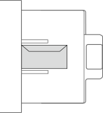 Fyll på kuvert i papperslådan eller i universalfacket. Platta till ojämnheter på kuverten innan du fyller på dem. Var noga med i vilken riktning du placerar kuverten och vilken sida som ska vara framsida.