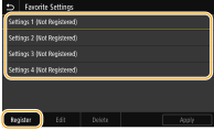 Välj oregistrerade inställningar och sedan <Registrera (Register)>.