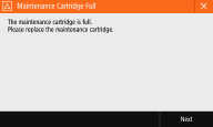 Om <Underhållskassett full (Maintenance Cartridge Full)> visas