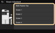 Du kan antingen kort dra ut lådan för papperskällan vars marginaler inte ska justeras, eller endast fylla på papper i papperskällan vars marginaler ska justeras.