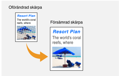 Du kan justera bildens skärpa. Öka skärpan för att få tydligare text och linjer, och minska skärpan för att förbättra tidskriftsfoton.