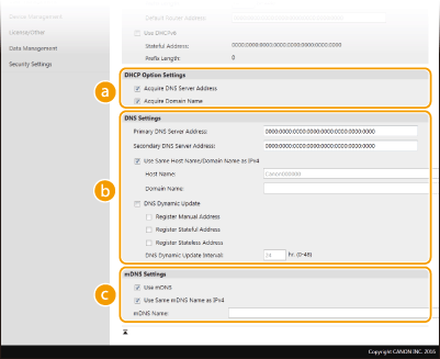 Markera kryssrutan för att dynamiskt uppdatera DNS-posterna när enhetens IP-adress ändras. Om du anger ett intervall mellan uppdateringar anger du tiden i timmar i textrutan [Intervall för dynamisk DNS-uppdatering (DNS Dynamic Update Interval)]. [mDNS-inställningar (mDNS Settings)][Använd mDNS (Use mDNS)]