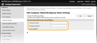 [Inställningar för dator-/arbetsgruppsnamn (Computer Name/Workgroup Name Settings)].