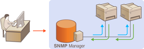 Med SNMP kan information om skrivarhantering, till exempel utskriftsprotokoll och skrivarportar, övervakas och hämtas regelbundet från en dator på nätverket.