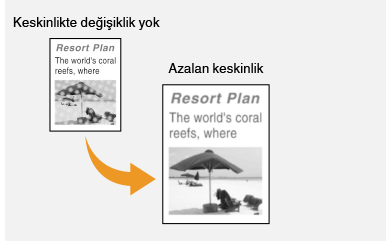Görüntünün netliğini ayarlayabilirsiniz. Bulanık metinleri ve çizgileri keskinleştirmek için keskinliği artırın veya dergi fotoğraflarının görünümünü iyileştirmek için keskinliği azaltın. Netliği Ayarlama