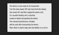 Makineyi taşıma hazırlığına başladığınızda bu işlem durdurulamaz. Yedek sarf malzemeleri hazır değilse hazırlığa başlamayın.