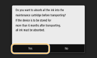Mürekkep miktarının bilinmediğini belirten bir hata oluşursa <Taşıma Hazırlığı (Preparation for Transporting)> menüsü çalıştırılamaz.