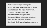 Makineyi taşıma hazırlığına başladığınızda bu işlem durdurulamaz. Yedek sarf malzemeleri hazır değilse hazırlığa başlamayın.