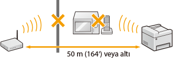 Makine ve kablosuz yönlendirici arasında duvar gibi engeller var mı?