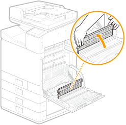 İşleme başlamadan önce emin olunKağıt sıkışmalarını gidermek için işleme başlamadan önce makinenin ve isteğe bağlı ekipmanın kapaklarının ve kağıt çekmecelerinin kapalı olduğundan emin olun.