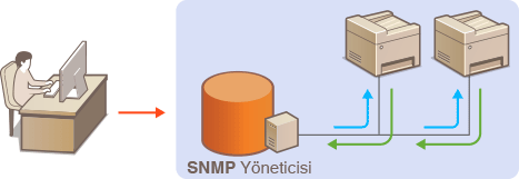 SNMP yönetim yazılımı, ağ üzerindeki bir aygıta yüklendiğinde, bilgisayardan uzakta makineyi yapılandırmanıza, izlemenize ve kontrol etmenize olanak sağlar. Daha fazla bilgi için yönetim yazılımınızın talimat kılavuzlarına bakın.