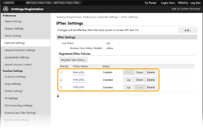 Sử dụng bảng thao tácBạn cũng có thể bật hoặc tắt truyền thông IPSec từ <Menu (Menu)> trong màn hình Home (Home). <Dùng IPSec (Use IPSec)>