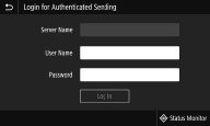 Xác thực Máy chủ LDAP) được bật, màn hình đăng nhập Gửi Được Cấp Quyền sẽ xuất hiện khi chức năng fax hoặc quét được sử dụng.