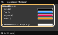 Bạn có thể kiểm tra việc sử dụng đầu in. Bạn cũng có thể kiểm tra cấp thay thế cho các bình mực và hộp bảo trì. Ngoài ra, bạn còn có thể kiểm tra việc sử dụng đầu in từ Remote UI.