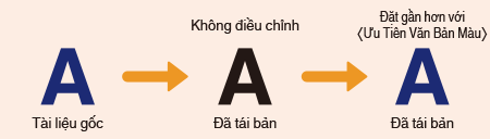 Chức năng này sẽ có hiệu lực khi thực hiện sao chụp màu với <Loại Bản Gốc (Original Type)> trong cài đặt sao chép được đặt thành <Văn Bản/Ảnh/Bản Đồ (Text/Photo/Map)>/<Văn Bản (Text)>.