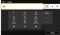 Chọn <PBX (PBX)> khi bạn muốn máy được kết nối thông qua PBX (Tổng Đài Nhánh Riêng). Cài đặt chức năng của phím <R> được hiển thị trên màn hình Các Tính Năng Cơ Bản cho chức năng Fax thành <Tiền Tố (Prefix)> hoặc <Hooking (Hooking)>. Nếu bạn chọn <Tiền Tố (Prefix)>, hãy đăng ký mã tiền tố trên màn hình kế tiếp. Nhập mã tiền tố bằng các phím số, chọn <T.dừg (Pause)>, và sau đó chọn <Áp Dụng (Apply)>. Nếu bạn không chèn một khoảng ngừng, mã tiền tố sẽ không được đăng ký.