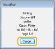 Hủy từ ứng dụngTrên một số ứng dụng, một màn hình như dưới đây sẽ xuất hiện. Bạn có thể hủy bỏ in bằng cách nhấp vào [Cancel (Cancel)].