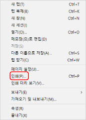 응용 프로그램 메뉴에서 [인쇄]를 선택합니다.
