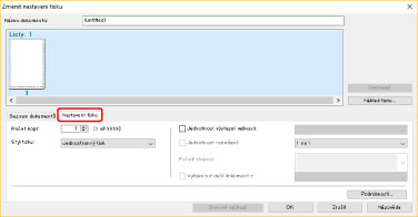 V dialogovém okně [Změnit nastavení tisku] zadejte název v položce [Název dokumentu], je-li to třeba.