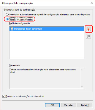 Este item explica o procedimento para a importação de um arquivo de perfil de configuração exportado (*.typ) e definição das informações do dispositivo.