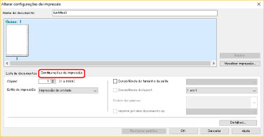 Na caixa de diálogo [Alterar configurações de impressão], defina um nome em [Nome do documento] se necessário.
