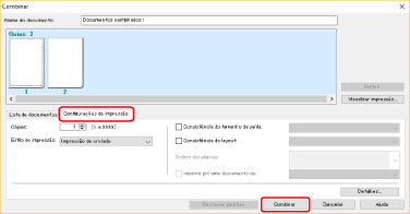 Se você desejar alterar as configurações de impressão, clique na folha [Configurações de impressão] → defina os itens necessários → clique em [Combinar].