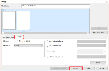 Nếu bạn muốn thay đổi cài đặt in, nhấp vào tờ [Cài Đặt In] → cài đặt các mục yêu cầu → nhấp vào [Kết hợp].