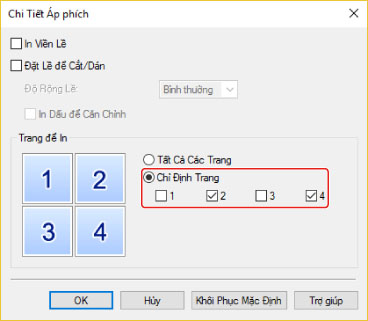 Hộp thoại [Chi Tiết Áp phích] > [Trang để In] > [Chỉ Định Trang]: [2] và [4]