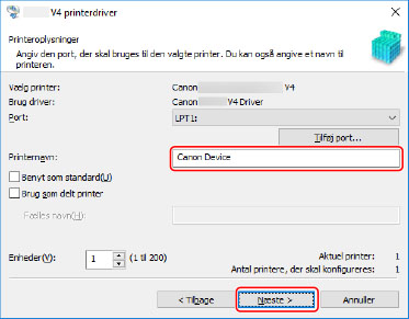 Vælg om nødvendigt [Printernavn] → klik på [Næste].
