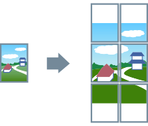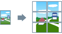 Puede ampliar los datos de impresión de una página e imprimirlos en varias hojas de papel. Cuando se juntan las hojas impresas, forman una impresión grande como un póster.