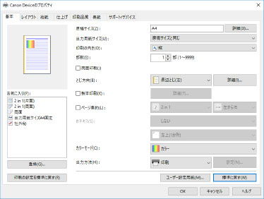 Windows標準の印刷設定画面が表示された場合は、このあとの手順も行ってください。