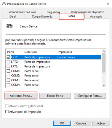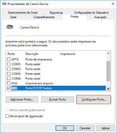 Se você definiu temporariamente uma porta do dispositivo ao instalar o driver, altere-a para uma porta correta seguindo este procedimento.