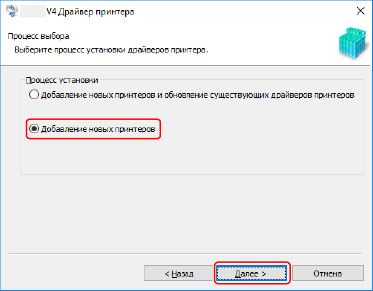 Если открывается следующий экран, выберите [Добавление новых принтеров] → нажмите [Далее].