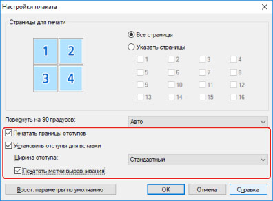 Печать большого плаката на нескольких страницах