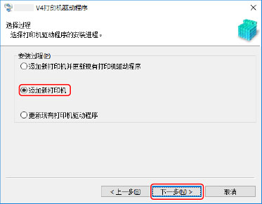 [更新现有打印机驱动程序]:如只想更新驱动程序,请选择此项。有关详细信息,请参阅驱动程序的更新步骤。