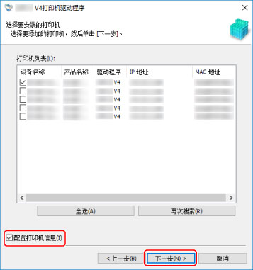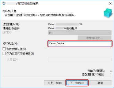 如果要更改设备名称,或将其设置为默认设备,请选择[配置打印机信息] → 单击[下一步]。