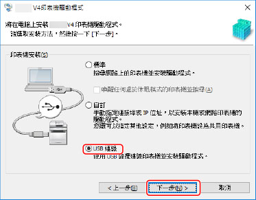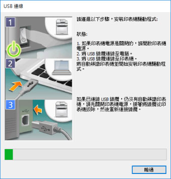 [略過]:如果透過 USB 正確完成連接,您可在此畫面完成安裝作業,不必等待自動完成。