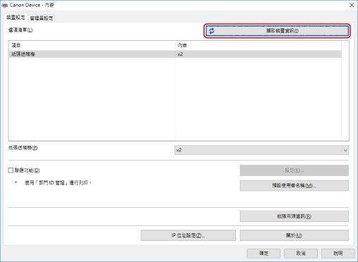 按一下 [擷取裝置資訊]。