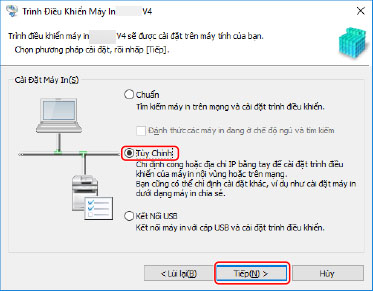 Chọn [Tùy Chỉnh] → nhấp vào [Tiếp].