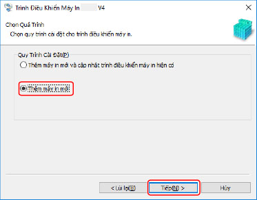 [Thêm máy in mới và cập nhật trình điều khiển máy in hiện có]: Lựa chọn phần này khi bạn muốn cập nhật trình điều khiển đã được cài đặt đồng thời bổ sung một trình điều khiển mới.
