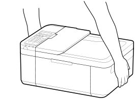 Jangan memegang pencetak di bagian Kotak Kertas. Pegang pencetak di kedua sisinya dan bawa menggunakan kedua tangan.
