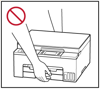- Älä altista mustepulloja iskuille. Mustepullot voivat vahingoittua tai pullojen korkit voivat aueta iskun voimasta, jolloin voi seurata mustevuoto.