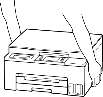 Håll skrivaren i sidorna och bär den med båda händerna.